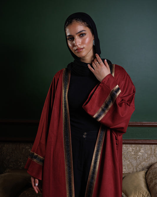 Jacquard Ramadan Kaftan - Metallic Burgundy