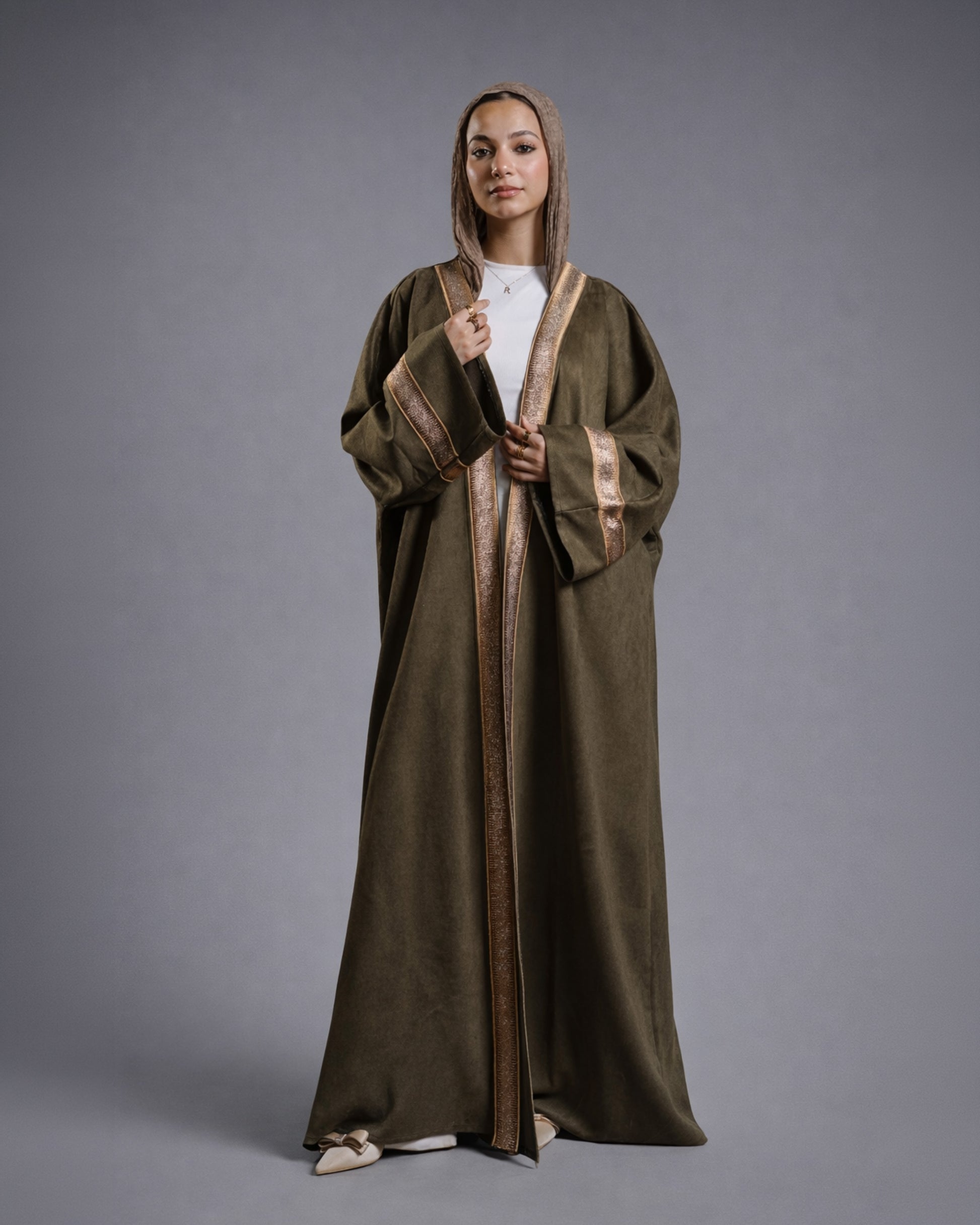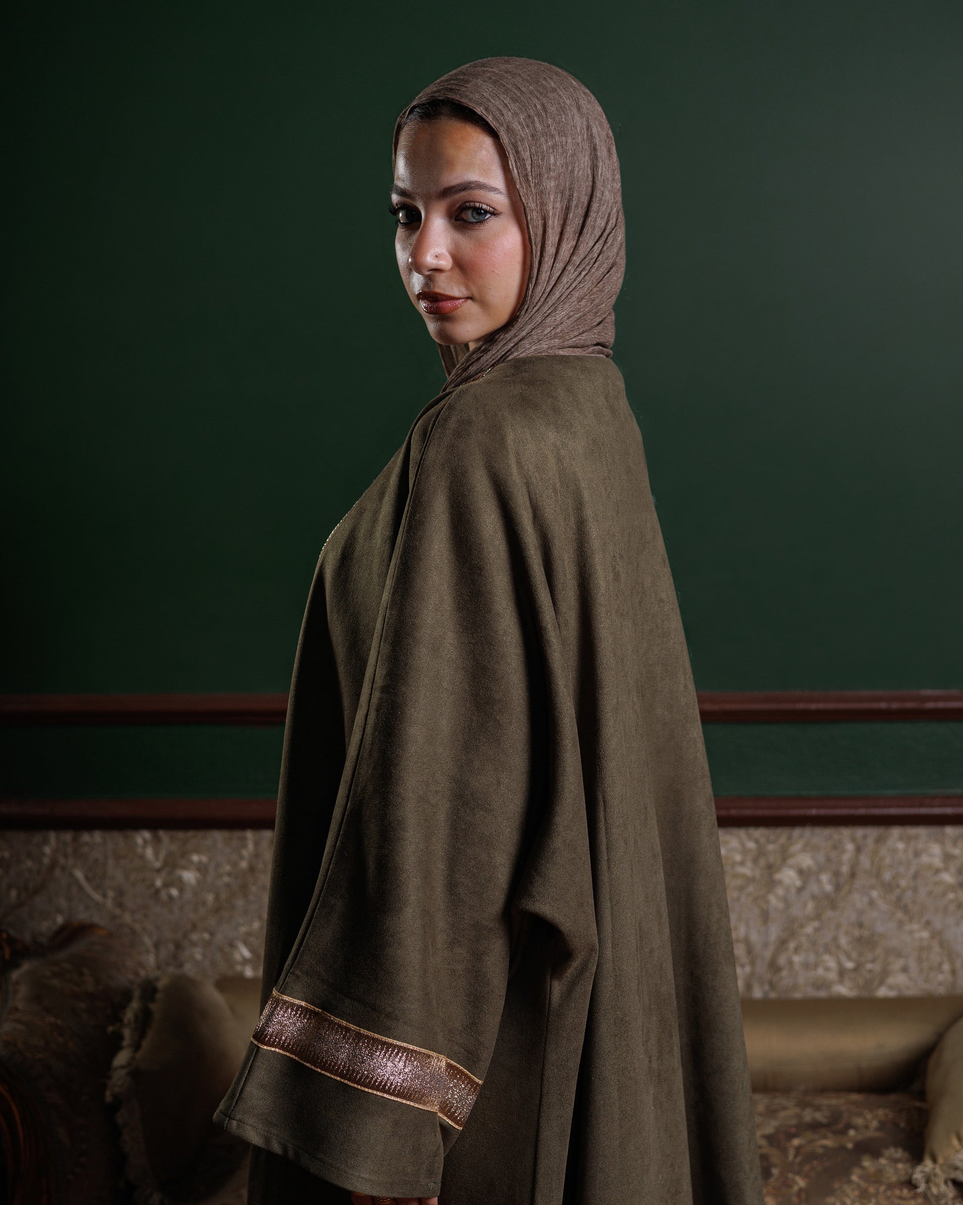 Step into Ramadan with grace and effortless elegance. Our Olive Green Suede Kaftan is designed to combine modesty, comfort, and timeless sophistication — perfect for Iftar gatherings and special Ramadan evenings.