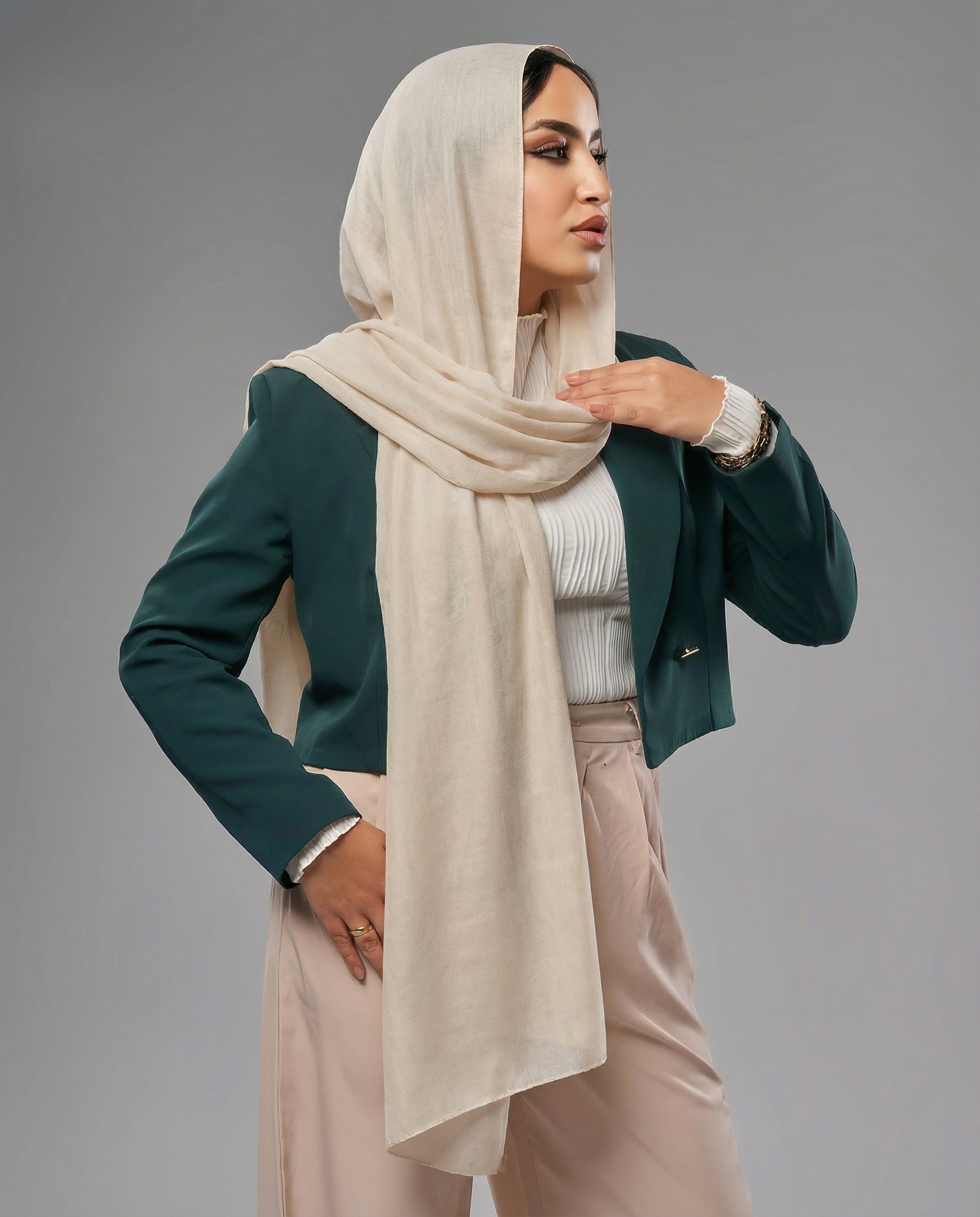 Crafted from our premium modal cotton blend, this hijab is a must-have for the modern, empowered woman. Incredibly soft with a natural, elegant drape, it offers a perfect fusion of comfort and timeless style. Whether you're navigating a busy day or embracing a special evening, its smooth finish adds an effortless touch of sophistication to every occasion.
